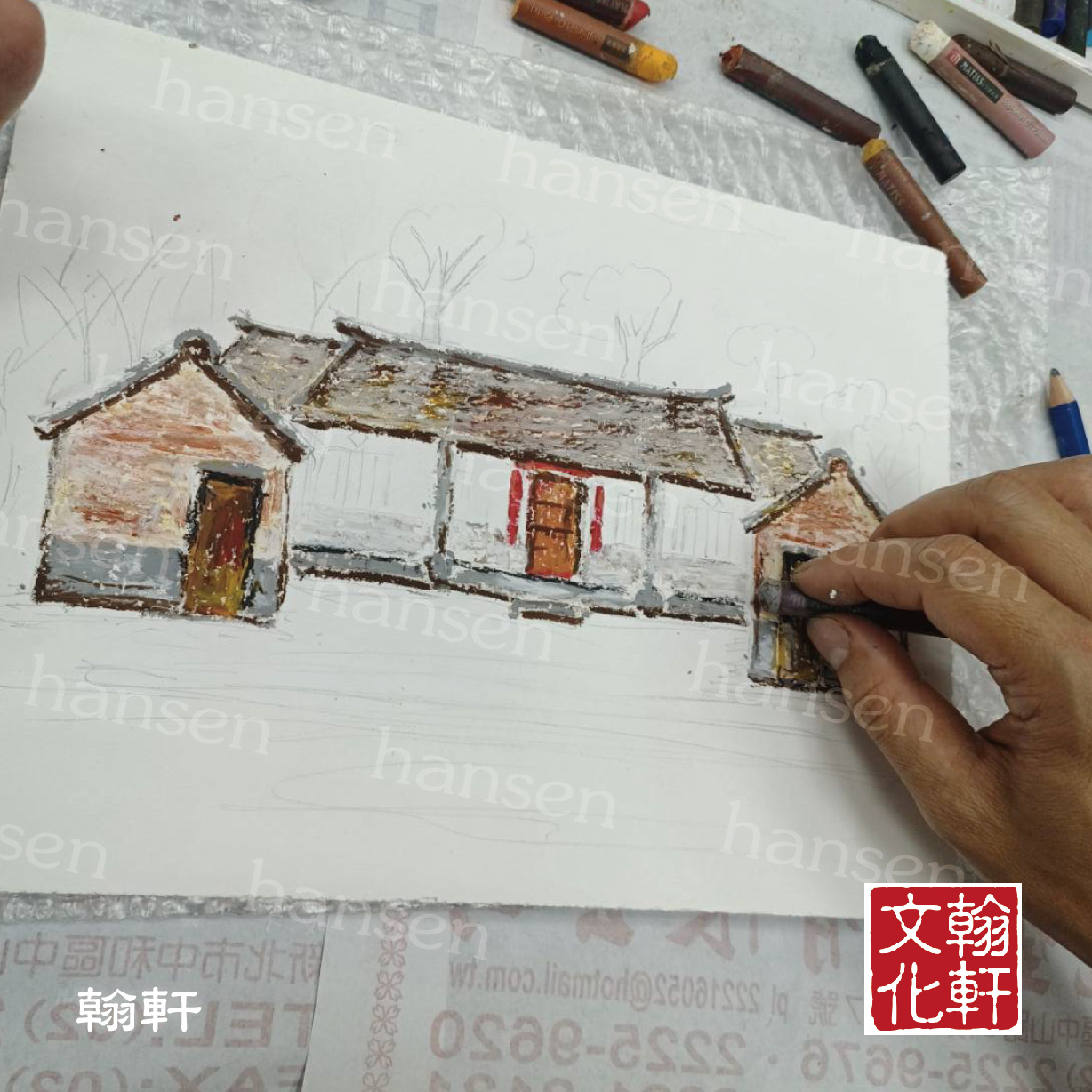 石膏版先用鐵尺將製圖表層刮平整,並留下細微紋路以便上色。