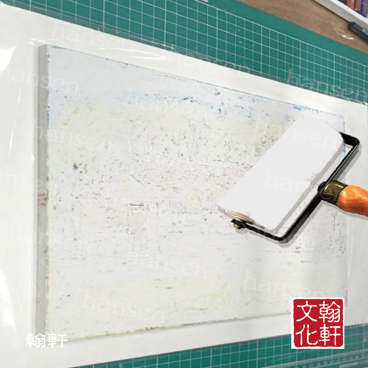 ▼輕輕滾上一層薄薄的油墨,避免粉蠟筆沾黏。(圖2-C)