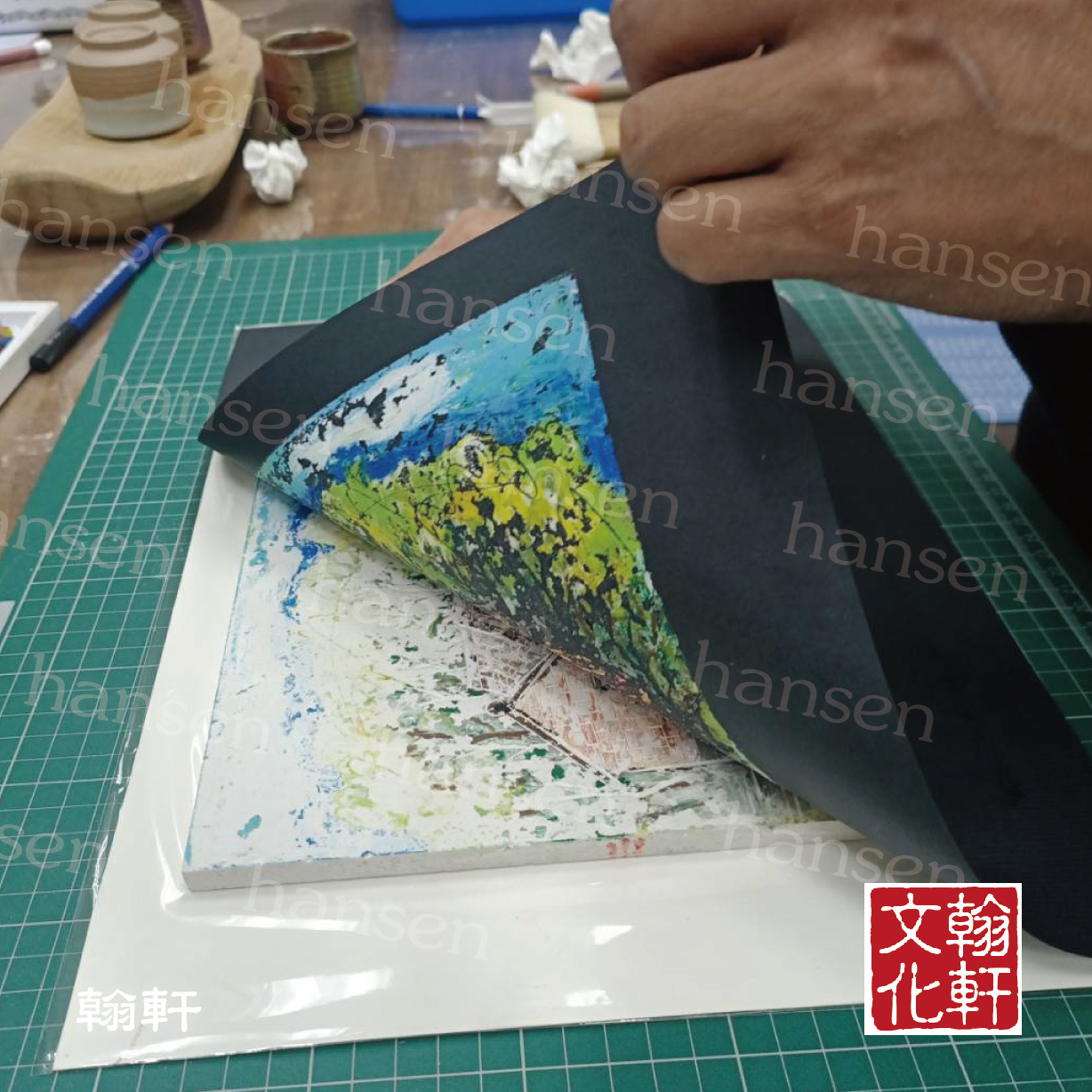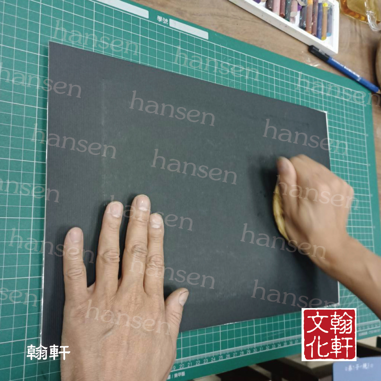 紙張尺寸略大於石膏版,將石膏版放在白色紙正中央,